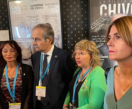 La diputada de Prodestur y los presidentes de los Belenistas de Cuéllar, la Federación Internacional y la nacional.