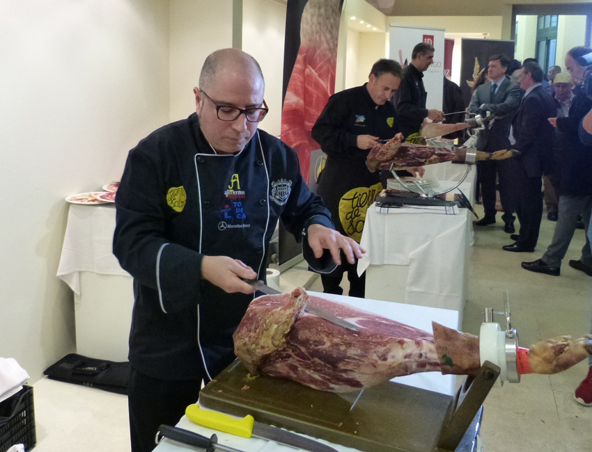 Pablo Martín, presidente de los camareros segovianos, explicó el inesperado auge de la Feria del Jamón de Segovia, que empezó organizando la asociación en 2013 un tanto por compromiso y sin excesiva fe en sus posibilidades. Sin embargo, los 10.000 visitantes de aquella primera edición demostraron la validez de la propuesta. “En la tercera edición ya fueron 20.000 visitantes, muchos turistas, y el mayor éxito fue que si la feria empezó el jueves, el viernes, los expositores tuvieron que reponer material de las ventas. Al concurso de cortadores se presentaron 250 especialistas de toda España”, señaló.