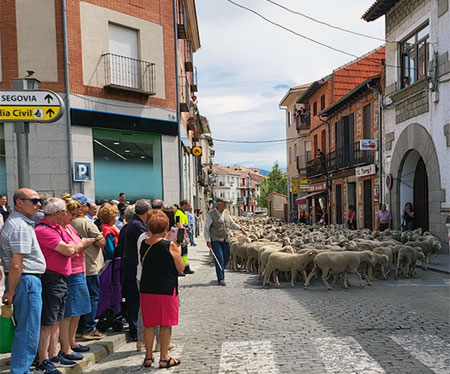Los grandes rebaños de ovejas han vuelto a entrar en la villa de el Espinar este 6 de junio y los pastores han “pagado”, como marca la tradición, los cien maravedíes estipulados por el derecho de paso de los animales por el pueblo, mientras que el Ayuntamiento espinariego ha ofrecido vino y queso a los guías del rebaño. La escena habitual durante siglos, en los que la trashumancia representaba uno de los más importantes recursos económicos para el Espinar, un lugar obligado de paso y descanso para los pastores y sus enormes rebaños de ovejas, que también eran esquiladas “masivamente” en el pueblo.