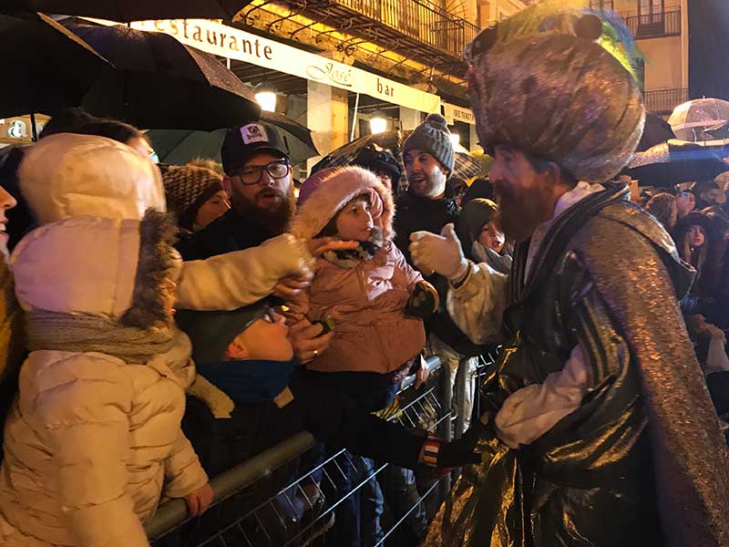 Y si los Magos y sus cortejos, bien nutridos de voluntarios, quisieron repartir ilusión pese a la climatología y tener que hacerlo a pie dejando sus tronos aparcados y bien tapados junto a la Catedral, la respuesta de los segovianos no fue menos espectacular. Miles de ellos aguantaron estoicamente a lo largo del recorrido mientras esperaban una procesión que en su primer tramo se movía muy, muy despacio.