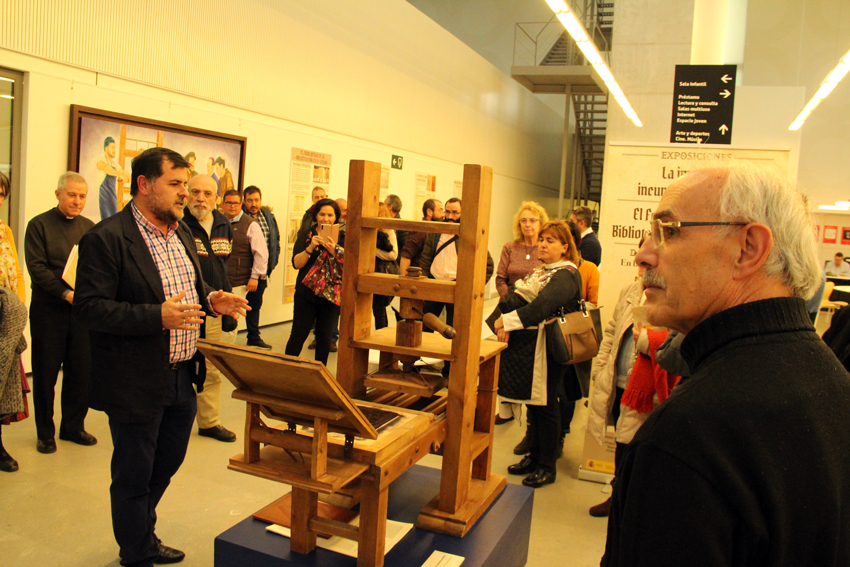 Fermín de los Reyes presenta la muestra en la biblioteca de Segovia.