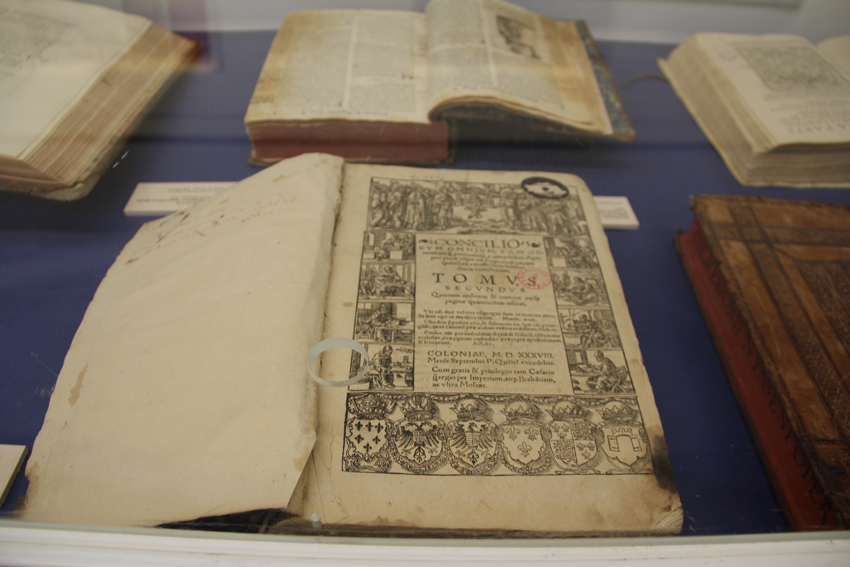 El más antiguo es de 1504. Son biblias políglotas tratados de todo tipo, incluido una rareza sobre Descartes y Newton, ejemplar único. Hay una especie de diccionario trilingüe, francés, latín, alemán, titulado Guía de Viajeros, el ya citado Colmenares, clásicos grecolatinos… Los hay expurgados por la Inquisición, es decir, despojados de sus partes más heterodoxas, muchos con anotaciones de todo tipo, hasta de una receta para curar el mal de bazo.