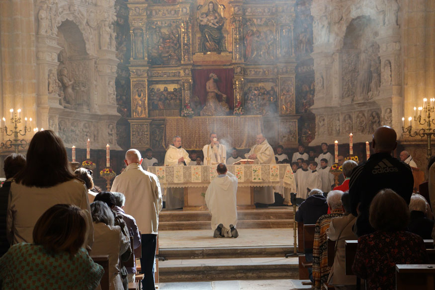 La celebración eucarística, retransmitida por Trece TV, ha estado presidida por el Obispo de Segovia, Jesús Vidal, acompañado por sacerdotes de la diócesis y de vecinas, así como por representantes de las órdenes benedictina y agustina, y de la Fraternidad Seglar Jerónima. La comunidad de la Orden de San Jerónimo ha estado representada por sus monjes: Fray Mauro, en nombre del prior del monasterio, Fray Andrés, de 94 años y que ha seguido la celebración desde su celda, y el padre Miguel Ángel Orcasitas, delegado de la Santa Sede para la Orden.
