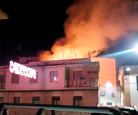Las llamas se iniciaron al filo de la medianoche extendiéndose rápidamente por la casa, de vigas de madera, y en la que reside un anciano de 93 años y, eventualmente, una cuidadora de 24 años. Según el relato facilitado por los familiares del anciano, unos jóvenes que pasaban por la zona detectaron el humo y dieron el aviso a la cuidadora,  golpeando la puerta insistentemente y alertando también a los bomberos. Entre todos sacaron al nonagenario mientras las llamas se extendían por toda la techumbre provocando la lógica conmoción entre el vecindario.