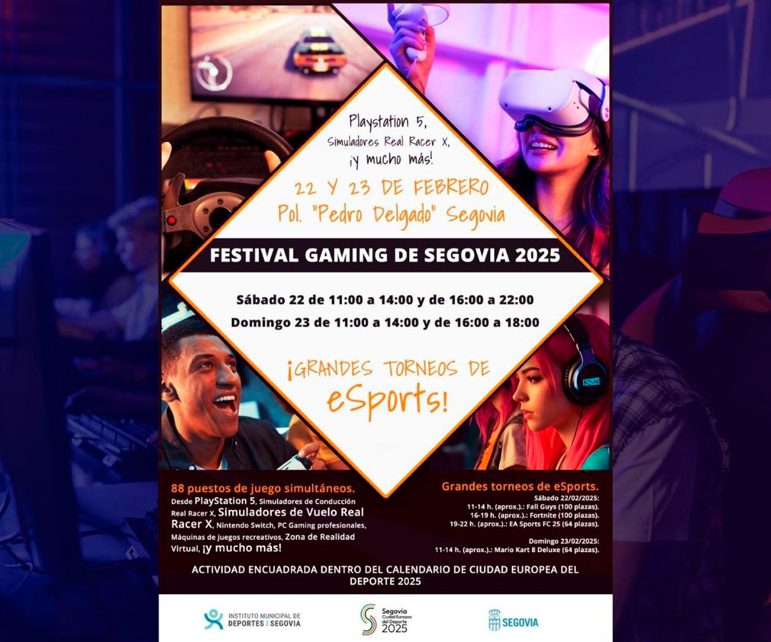 El área de Deportes ha organizado el primer Festival Gaming de Segovia, un evento enmarcado dentro del calendario de Segovia como “Ciudad Europea del Deporte” y concebido como una muestra de nuevas tecnologías dirigidas a la educación, el ocio, la competición y el entretenimiento, según ha señalado el concejal de Deportes, Jesús Garrido.