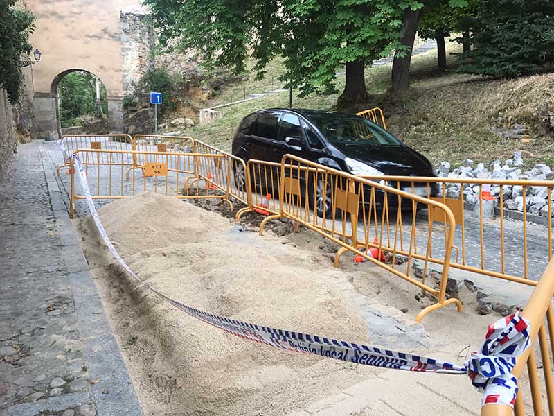 La última, una tubería rota junto al arco de San Cebrián hace del arco del Socorro la entrada única al recinto amurallado. La conducción se rompió en sábado y la concejala, Paloma Maroto, la misma que anunció que “si hay que trabajar en sábado en San Juan, se pone en marcha en cualquier momento” reconocía que la calzada levantada por la avería no se podría empezar a recomponer hasta el lunes porque en fin de semana “no hay donde encontrar hormigón”… Nos espera un verano toledano.