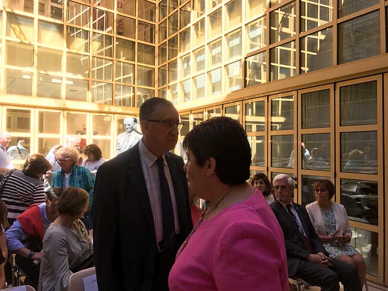 Luquero destacó el importante papel que jugó María Zambrano en su época “una de las pocas niñas, una de las pocas adolescentes que estudió y que pudo llegar a la universidad”, “la extraordinaria pensadora que llevó a Segovia como se lleva un talismán protector”, y ha entregado el pergamino a José Luis Mora, en representación del alcalde de Vélez-Málaga.