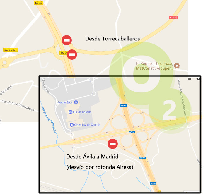 Más cortes en la SG20 por las obras de desdoblamiento de la circunvalación segoviana. A partir del lunes 3 de julio, tres accesos más quedan inhabilitados por un espacio de 4 meses. Son los de incorporación a la SG-20 desde Torrecaballeros (N-110), lo que obligará a los que por ahí lleguen a seguir por la Lastrilla hasta el enlace de la A-601, o cruzando Segovia hasta el de San Cristóbal. También el del carril del enlace con la autopista AP-61 en dirección Madrid desde Ávila, en el pk 10,200 de la SG-20, cuyo movimiento alternativo podrá ser realizado tomando el ramal a Segovia del enlace y cambiando de sentido en la glorieta de Alresa para incorporarse desde allí a la autopista.