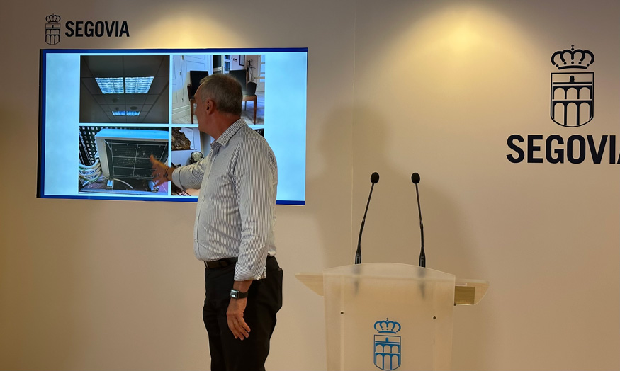 Primera acusación, el despacho. “No es cierto que se haya encargado una memoria técnica, lo único que se encargó fue un boceto. Pero miren, no es mala idea. La dignidad del cargo y el respeto a los ciudadanos que van a ver al alcalde de Segovia no se merece esto. Y si, encargaré esa memoria técnica”, decía. Y por “esto” se refería Mazarías a la proyección de fotos en las que se evidenciaban las miserias de alcaldía. También explicó una anécdota esclarecedora. Como se ha dicho en el despacho del alcalde hay un armario. “No encontraban la llave, no la encontraban porque estaba rota en la cerradura. Se mandó arreglarlo y apareció ¡documentación de los tiempos de Ramón Escobar!“, explicaba. Conclusión: “desidia y dejadez”, dijo Mazarías, de los anteriores ocupantes del despacho que mantuvieron el armario roto y sin abrir en lo que va de siglo. No lo dijo, pero la idea es que los socialistas son unos dejados de la mano de Dios.