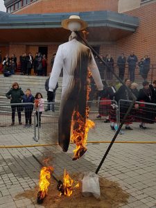 Tenemos otras cosas que duran mucho, quizá más de lo debido. Por ejemplo las celebraciones en honor a Santa Águeda, ya sabe, esa época en la que en cada esquina —hay una original, la inventaron en Zamarramala— aparece un grupo de mujeres, dos alcaldesas y un pelele al que prender fuego, dicen que para representar la lucha de la sociedad contra el machismo. Junto a las mujeres encontrará siempre pegados a uno o dos concejales que estos dos fines de semana son para ellos de “temporada alta”, que hay que atender a la parroquia. ¡Qué suene la jota!