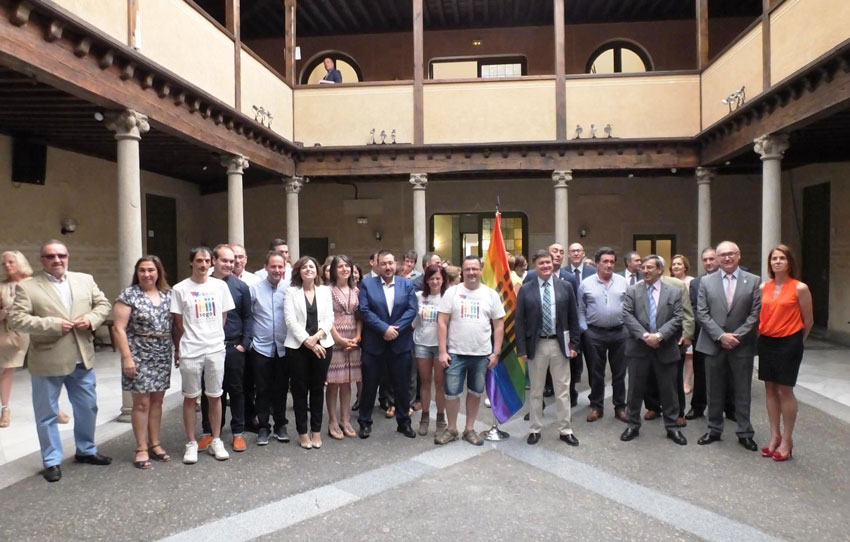 Pleno express en la Diputación de Segovia, que empezó con un posado del plenario junto a miembros de Segoentiende junto a la bandera arco-iris instalada en el patio de la corporación. La medida viene inducida por Centrados en Segovia, que en su día presentó y consiguió aprobar por unanimidad una moción para sumar a la diputación a las entidades que lucen la bandera gay en vísperas del Día del Orgullo LBGT así como a las que promueven una nueva ley de igualdad que mejore la normalización del colectivo.