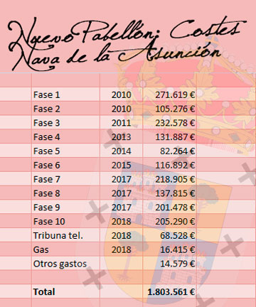 Concluyen así ocho años de obras, lo que convierte al de Nava en el pabellón de más longeva construcción (superando el récord de El Peñascal, en Segovia, 7 años) desde que allá por 2010 se iniciaran los movimientos de tierras hasta enero de 2019. Han sido diez fases de obras (sí, diez), motivadas porque el proyecto corrió en paralelo a una profunda crisis de recursos públicos. “Más de la mitad de la financiación la ha asumido el municipio”, explica el acalde, Juan José Maroto. Inicialmente, bajo la anterior administración, se confiaba con que la Junta iba a aportar el grueso del dinero, no fue así. De los 1,8M€ de coste la administración autonómica habrá aportado 300.000€. A través de planes provinciales de la Diputación y de recursos internos municipales se fueron acometiendo pequeñas fases, todo lo cual en medio de una etapa de grandes restricciones en el erario público.