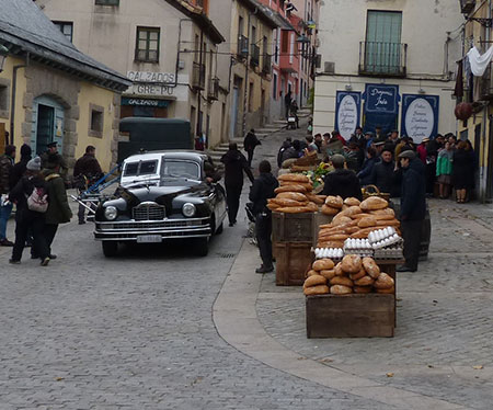 Curiosa situación. Va uno a por tabaco al estanco en los aledaños de la plaza de los Dolores en La Granja, y la Granja ya no es La Granja sino que es Vigo, en concreto, un mercado de los años 40, con los granjeños convertidos por obra y gracia de vestuario y maquillaje en gallegos de medio pelo, vendedores de acelgas, manzanas, pan y patatas (pescado, poco).