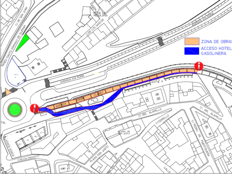 El corte al tráfico de la avenida obliga a la intervención del departamento de Tráfico; el de Transportes y el de Obras. Salvo los vehículos autorizados a usar la vía de servicio ascendente que dará accesos a los hoteles y la gasolinera cuando los cortes puntuales lo permitan, el tráfico, incluyendo los autobuses urbanos, se reconducirá por la calle de San Gabriel y Vía Roma. Según la planificación oficial “el acceso al aparcamiento subterráneo quedará operativo sin restricciones de paso de vehículos”.