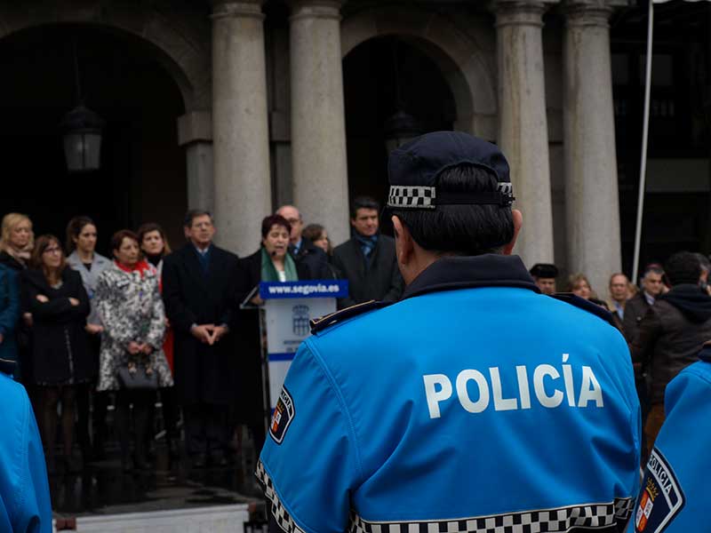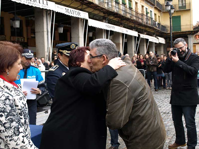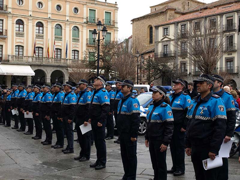 La Policía Local de Segovia ha celebrado este domingo, 1 de marzo, la fiesta de Cuerpo, cuyo acto central tuvo lugar en la plaza Mayor, donde formó la mayoría de la plantilla, compuesta actualmente por 103 efectivos, para recibir homenaje de la ciudad, con especial mención a una treintena de sus miembros, a los que se han entregado distintas distinciones.