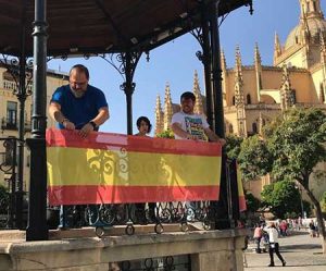 Dígame si no que hacían los de Centrados en Segovia vistiendo de rojo y gualda el quiosco de la plaza mientras reclamaban que el balcón consistorial colgara el repostero de las grandes fiestas —me perdonará, pero feo, feo, feo— que no estaba allí por culpa de un descuido de protocolo, que por otra parte es poco rígido en ese ayuntamiento.
