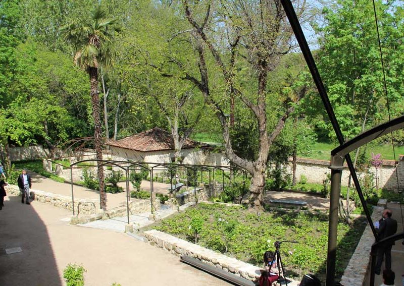 Dice la nota de prensa: "En cuanto a los trabajos de jardinería se ha mantenido la idea de conservar el carácter originario del lugar. Con la única excepción de las palmeras del Himalaya, que posiblemente fueron introducidas en el jardín cuando fue remozado en 1849, todas las especies elegidas son de origen europeo y habituales en los jardines del siglo XVI o escenas distintas identificadas con un nombre como: pasillo de los tilos, la alfombra de fragaria, la sala de los bojes, la frutaleda o sala de las rosas damascenas”.