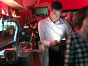 Apoyado durante toda la actuación en la barra del local e intercalando momentos de atención a su móvil y a lo que ocurría en el escenario, el socialista aceptó hacerse algunas fotografías con las personas que se lo solicitaron y posó también para este periódico, al que evitó hacer declaraciones puesto que “quiero disfrutar del concierto”, según explicó.