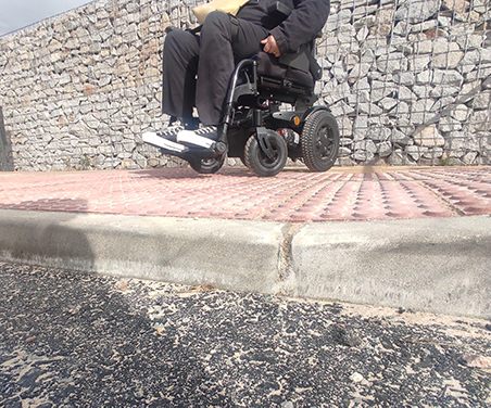 Pero los problemas no terminan ahí. La salida del hospital presenta las mismas dificultades. “Como no se puede subir a la acera, te retiran las vallas de protección y sales a la carretera principal con el peligro que eso conlleva para subir por el paso de cebra, que también precisamos de ayuda puesto que han puesto grava que dificulta el paso de las ruedas y que tampoco está bien rebajado”.
