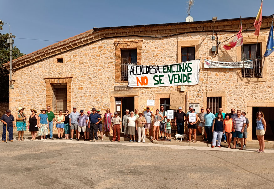 Medio centenar de vecinos de Encinas se concentraban en la mañana del 8 de agosto para reclamar la paralización de la venta del solar municipal de la antigua fragua y la dimisión de la alcadesa, Lourdes Cristóbal, por considerar que su actuación en la tramitación de la enajenación de la parcela ha vulnerado la confianza de la ciudadanía y ha comprometido la integridad de la gestión del patrimonio municipal. Además, critican a la alcaldesa su falta de diálogo.
