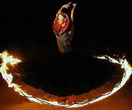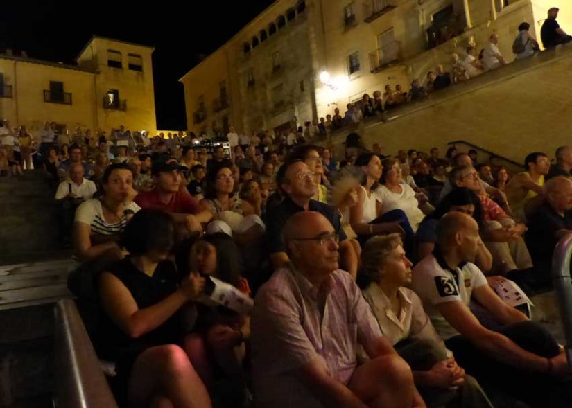 Para entonces, el centro histórico segoviano era un totum revolutum de musicos, extraños montajes, talleres infantiles, terrazas abarrotadas, teatro callejero, danzarinas de fuego (por cierto, se le quemó el vestido) y público familiar, tomando baños de luna.