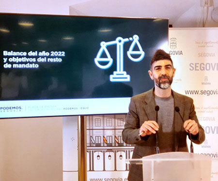 San Juan ha señalado áreas municipales “realmente urgentes y necesarias para Segovia” que han quedado en blanco en 2022, a pesar de los esfuerzos de su formación por ofrecer propuestas y soporte político al equipo de gobierno para llevarlas a cabo: ninguna medida en materia de vivienda, ni ayudas al alquiler, ninguna iniciativa en autoconsumo y soberanía energética, a pesar del compromiso del gobierno de PSOE e IU con Podemos desde el año 2019 para poner en marcha estas instalaciones en edificios municipales y la reclamación de varios colegios públicos. Tampoco ha habido avances en materia de industria y diversificación económica ni en salud mental, concluyó.