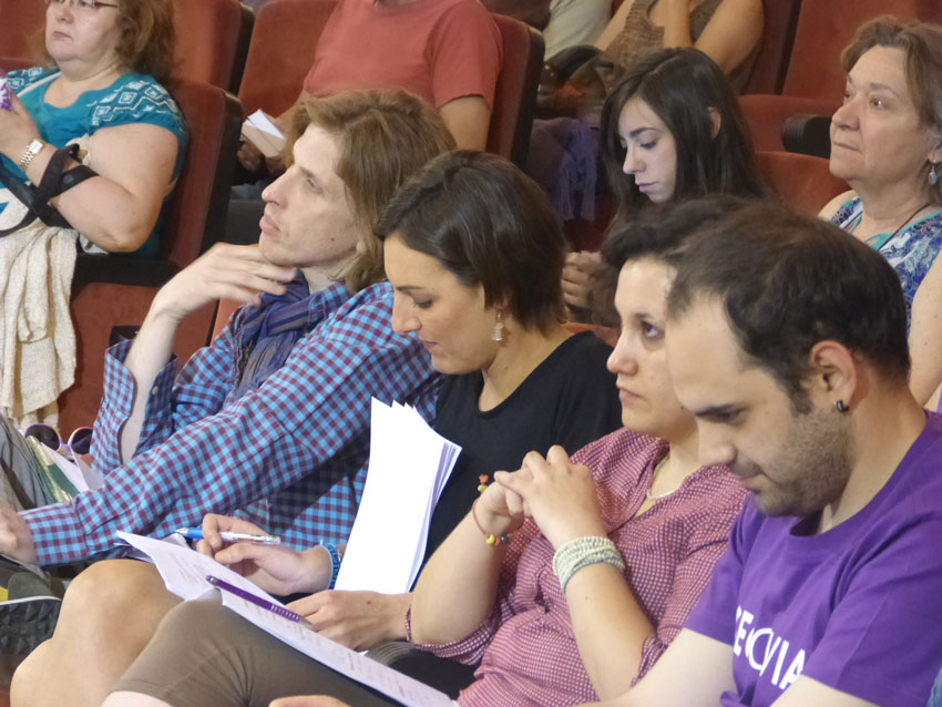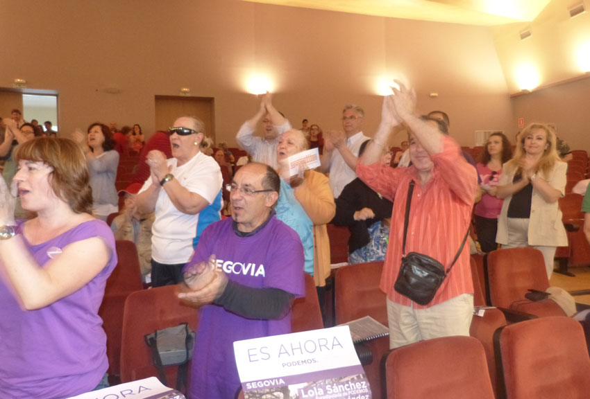 Alejada del mundanal ruido de las municipales, Podemos Segovia centra su campaña electoral para las autonómicas en visitas por los pueblos. Piensan recorrer 45 con la comitiva de aquí al 24M, en una estrategia que no termino de comprender. El mitin central, el jueves 14 de mayo, en el Conservatorio de Segovia era la ocasión de verlos en Segovia y allá que me fui con la idea de ver algo refrescante, novedoso, cuando menos original.
