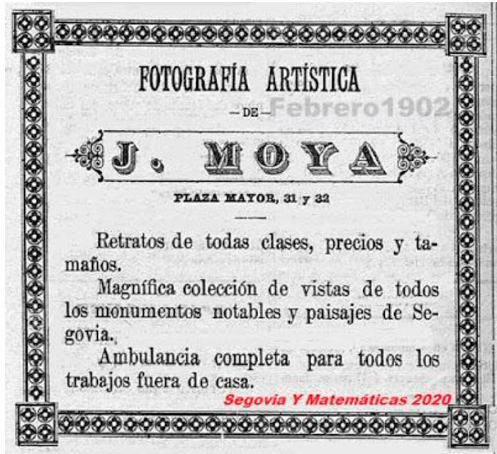Juan Moya estableció estudio fotográfico en Segovia en 1901. Peñas comenta en su Blog: