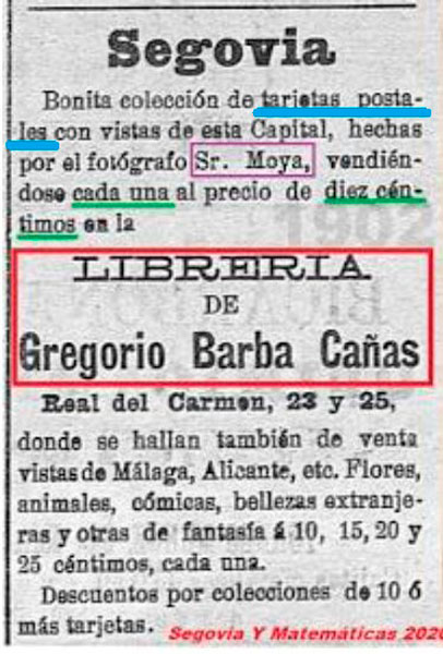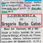 También hay constancia de que la librería de Gregorio Barba Cañas anuncia su establecimiento con la llamada de atención de las fotos del Sr. Moya.