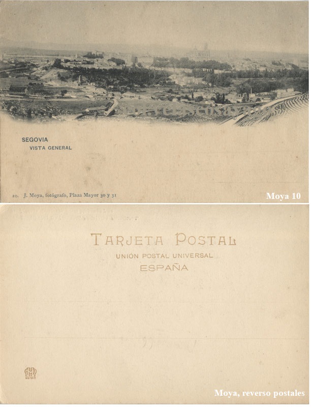 J. Moya lanza una colección de 10 tarjetas postales en 1903, impresas en los talleres de la casa madrileña Hauser y Menet. Fototipia a la que hemos dedicado algunas entradas.