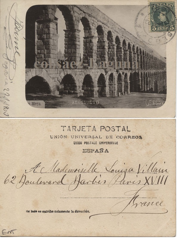 Está dedicada al acueducto (la colección Saéz-Laguna tiene alguna otra, también fotográfica, de la misma factura y composición que fácilmente saliera de la producción de J. Moya).