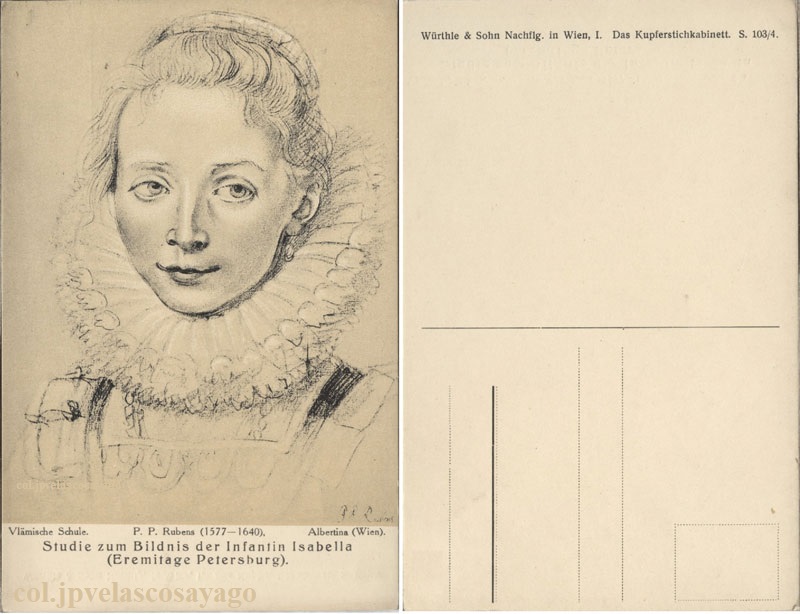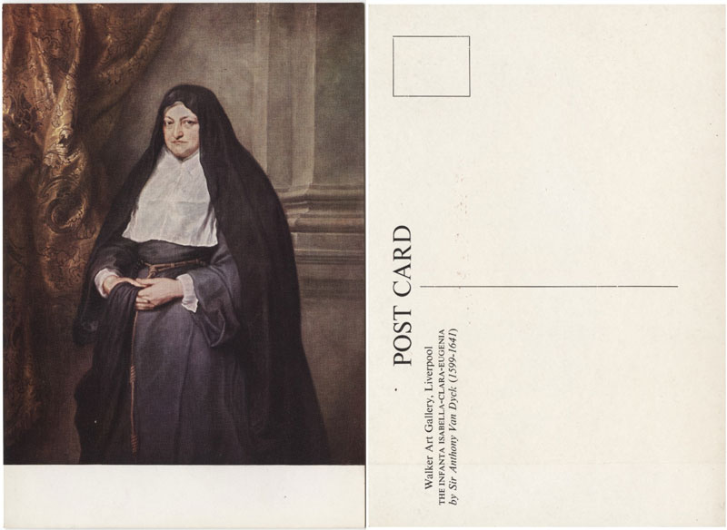 El texto, en alemán, de la postal indica que se trata de un cuadro de la Archiduquesa pintado por Anton Van Dyck (Amberes 1599 –Londres 1641).