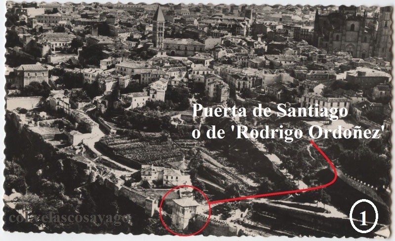 La imagen de la Puerta de Santiago no está tan difundida en la tarjeta ilustrada como lo pueda estar las puertas de San Andrés o San Cebrían. Curiosamente la edición de ‘Grafos’ – ‘Nuño’, compuesta por 80 tarjetas postales numeradas de la ciudad no ofrece ninguna de esta entrada.