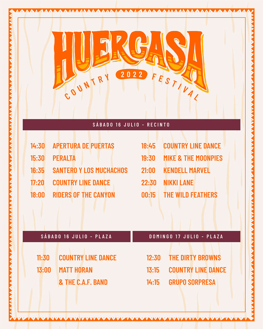 Con nombres como Mike&The Monnrpies, Kendell Marvel, Nikki Lane, The Wild Feathers o Matt Horan&The CAF Banda regresa los días 16 y 17 de julio a la plaza y campo de fútbol de Riaza una nueva edición del Huercasa Country Festival, cita de la música country y americana. Con entradas a partir de los 45€ para la jornada sabatina, a la que se pueden añadir por 15€ billete de ida y vuelta en el Bus Huercasa desde Madrid.