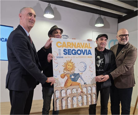 El Carnaval de Segovia 2026 ya tiene programa e imagen oficial. El cartel, obra del ilustrador guipuzcoano Iban Barrenetxea, toma como eje el acueducto y presenta un arlequín con dos máscaras —el sol y la luna— como símbolo de la dualidad y el espíritu festivo de estas celebraciones, que se desarrollarán entre el 14 y el 22 de febrero.