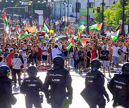 La contradicción se hizo aún más evidente en las calles de Madrid. Una protesta que clamaba “stop a la violencia” terminó con violencia: cargas de antidisturbios, tensión en el centro de la capital, enfrentamientos que añadieron más ruido y más pólvora a un conflicto que debería resolverse en despachos diplomáticos, no en el asfalto de la Gran Vía.