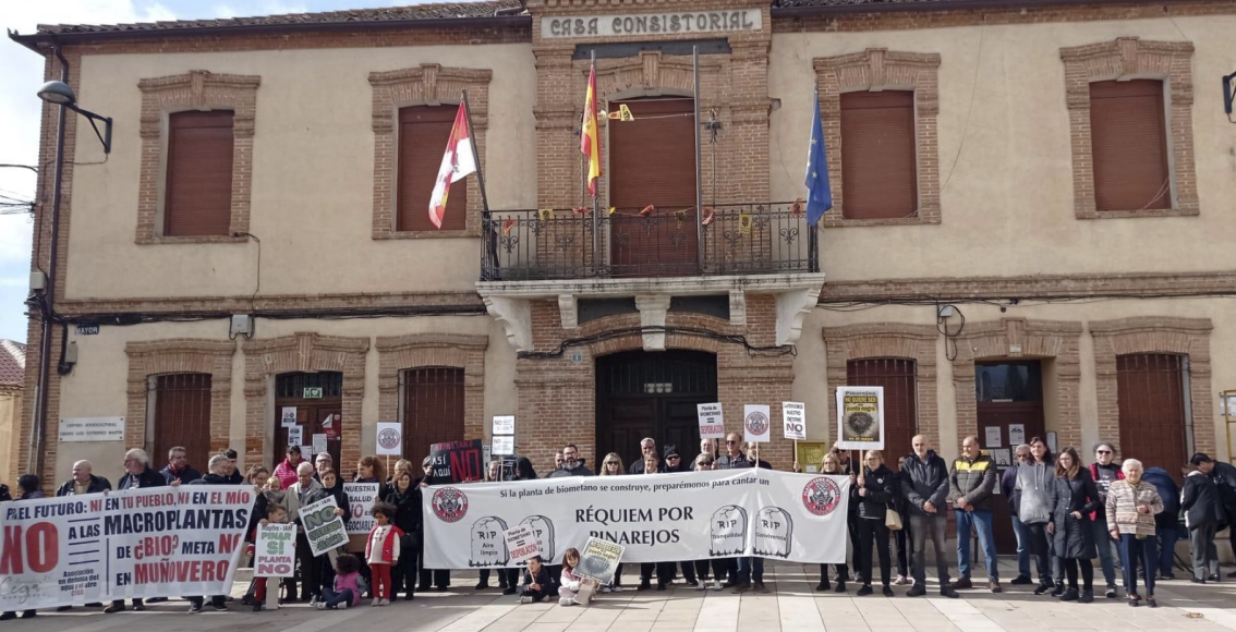 Decenas de personas se concentraron este domingo en la Plaza Mayor de Pinarejos bajo el lema “Réquiem por Pinarejos”, convocadas por la Plataforma Ciudadana de Pinarejos y la Comarca Oeste para mostrar su rechazo al proyecto de instalación de una planta de biometano en el entorno del municipio.