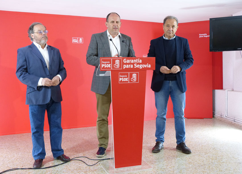Montes, Aceves y Gordo, en la sede del PSOE segoviano. (Archivo)