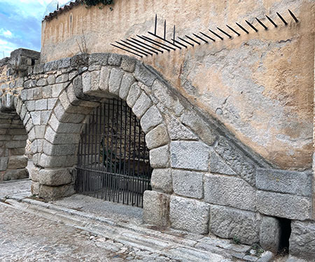 Rejas de bloqueo de acceso al monumento, en el Postigo.