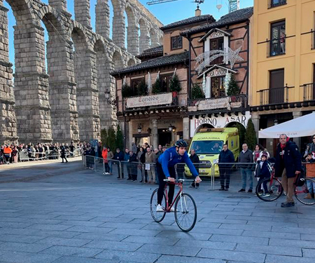 La carrera del Pavo celebrada, como es tradicional, durante la mañana de Navidad, ha vuelto a reunir a centenares de personas que no han querido perderse las evoluciones de los deportistas de esta modalidad de ciclismo sin cadena. que comienza con una prolongada bajada desde la Calle Teodoro el Grande y se resuelve tras metros de subida hasta la plaza Adolfo Suárez en el caso de los que demuestran mejor técnica y fuerza para lograr los golpes de riñón y de brazos para lograr el movimiento de los vehículos.