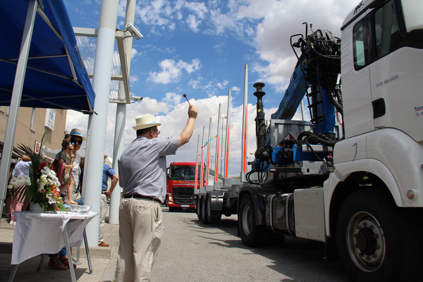 San Cristóbal, que cae el 10 de julio, en San Fermín (el 7), cumpliendo la tradición desde Asetra, Agrupación Segoviana de Empresarios del Transportes, se organizó en la ciudad del transporte la tradicional bendición de camiones (en rigor, de