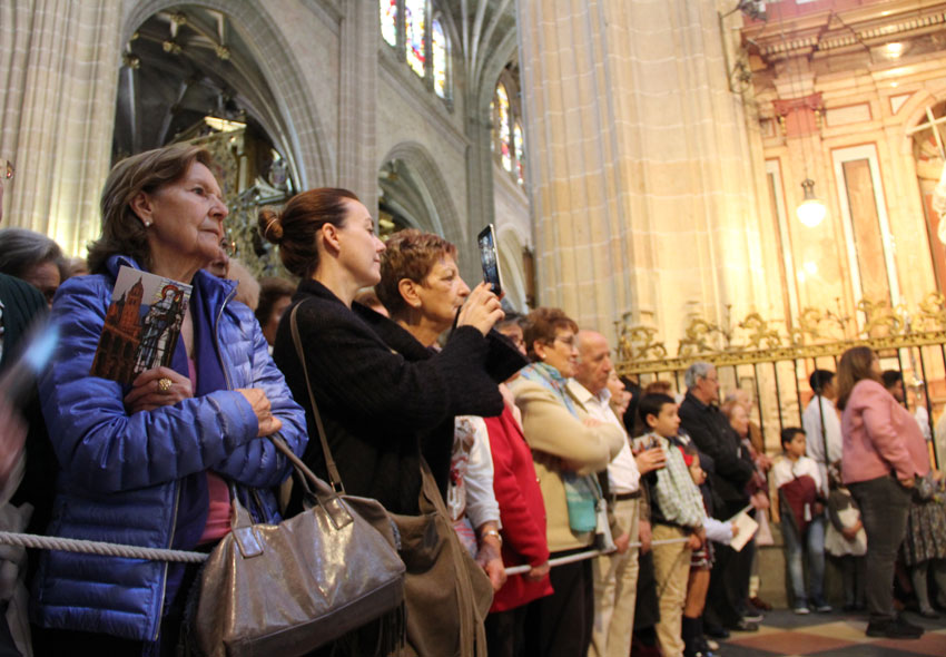 Un buen tiempo que acompañó las celebraciones matinales en Segovia, con muchos devotos de las setas, jilgueros y canarios, en las habituales paradas de las respectivas asociaciones micológica y de criadores, pero sobre todo del villancico de San Frutos, que es probablemente y hojas al margen el mejor prodigio que nos legara el patrón, por otra parte cicatero en milagros habida cuenta que se le atribuyen tres  en vida, y dos de ellos -arrodillar a un burro ante una sagrada forma y persuadir a dos toros bravos para tirar de una yunta- tampoco son para tirar cohetes (con paciencia y un garrote, Frank de la Jungla hace cosas parecidas, al menos se le ve capaz).
