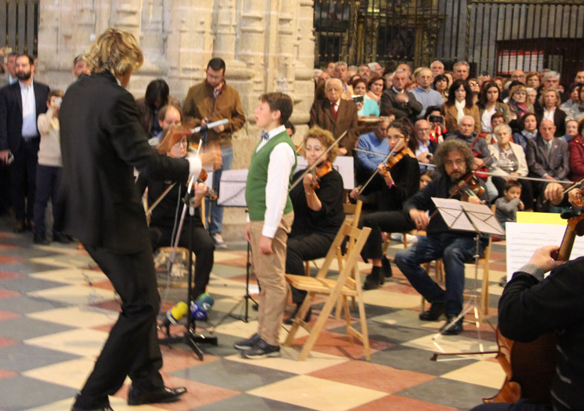 Palabras mayores es juntar por mor de la tradición, filantrópica y anualmente a una orquesta, doscientos intérpretes y miles de devotos en el baptisterio de la Catedral. Bien es verdad que la pieza de Antonio Hidalgo de 1874, de ingenuos pero hermosísimos aires a lo Haydn, se lo merece. Este año estrenándose como solista el chaval, doce años, Pedro Cuadrado, de La Lastrilla, bajo la batuta por segundo año consecutivo de Francisco Cabanillas.