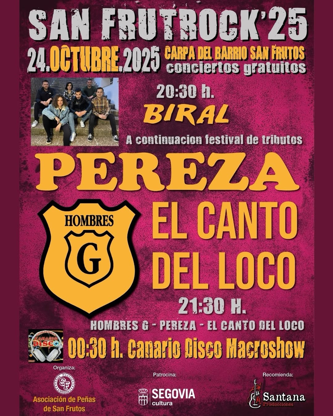 Las fiestas de San Frutos 2025 en el barrio de La Albuera comienzan a perfilarse con un programa que, aunque aún no está cerrado, ya ha confirmado una de sus citas más esperadas: el San FrutRock, que este año será un homenaje en clave tributo y se celebrará el 24 de octubre en la carpa del barrio.