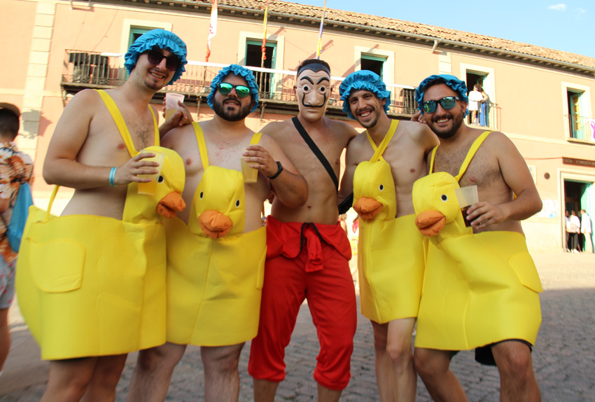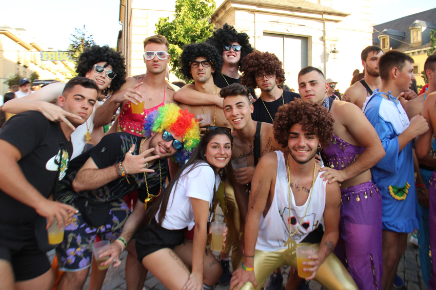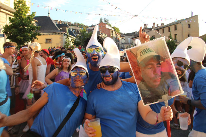 El  preceptivo canto a mogollón del himno local, el San Luis, San Luis, San Luiss.... puso fin a la ceremonia inaugural, dando paso al desfile de peñas, como siempre, carnavalescamente ataviadas, prodigando uno de los mejores momentos de los cinco días de juerga que nos esperan. Y para muestra un botón.