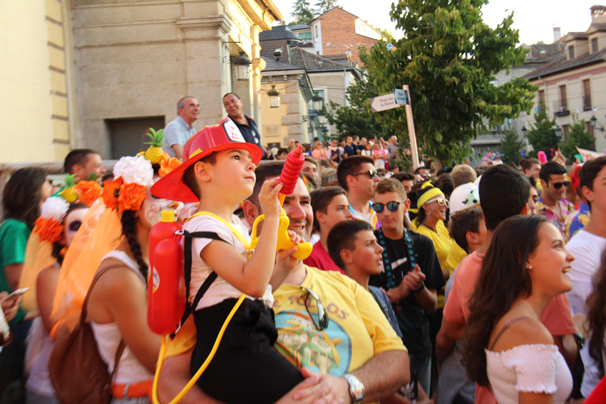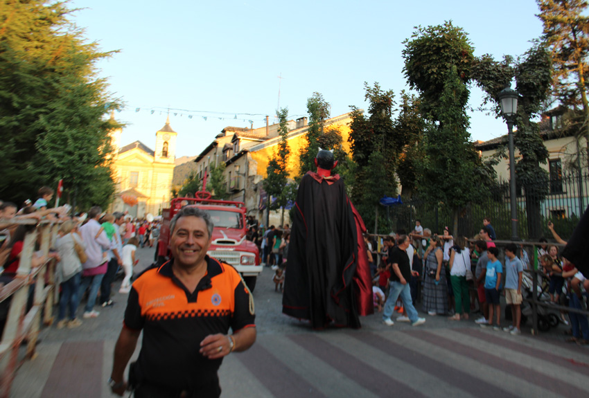 El casco de bombero ha sido el disfraz del año en el primer día de las fiestas de San Luis, en La Granja. En el recuerdo, los dos días de fuego que se han llevado por delante la fachada arbórea del Real Sitio. Prendido el cohete por el siempre efectivo "Canuto", el balcón consistorial desplegó una pancarta: "Gracias". Un gracias dirigido al "vecino del año", uno de los títulos y premios que se conceden en la jornada inaugural, y que con toda justicia fue a parar a todos los cuerpos de emergencias que trabajaron en los más de 14 días de extinción. Bomberos, agentes medio ambientales, militares, Protección Civil...