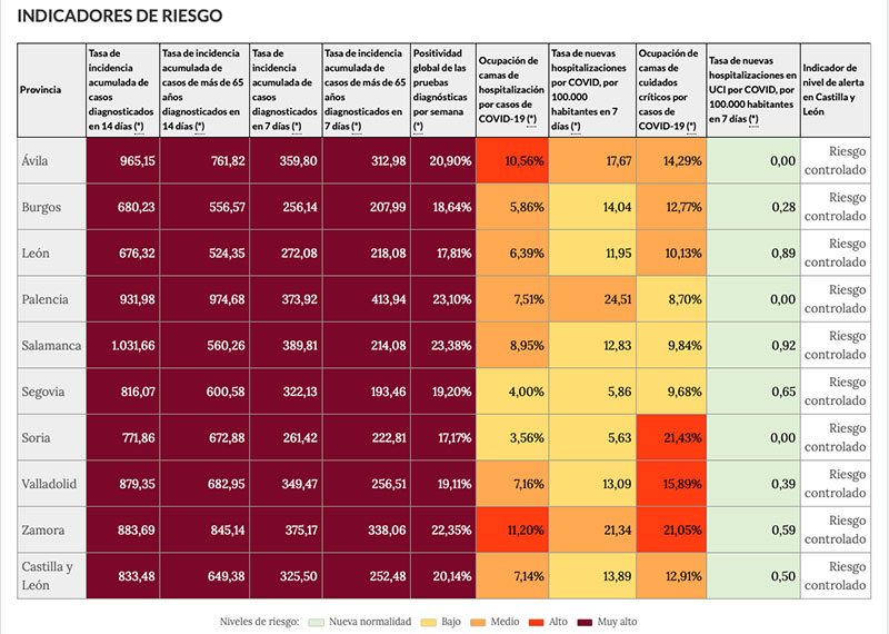 No obstante, los indicadores de riesgo siguen mostrándose favorables. La provincia de Segovia tiene en este momento una tasa acumulada en dos semanas de 816,07 casos por cada 100.000 habitantes, la tercera más baja de la comunidad y ligeramente por debajo de la media regional, situada este martes en 833,48 casos. La ciudad de Segovia, también por debajo del millar, tiene una tasa de 930,58 casos.