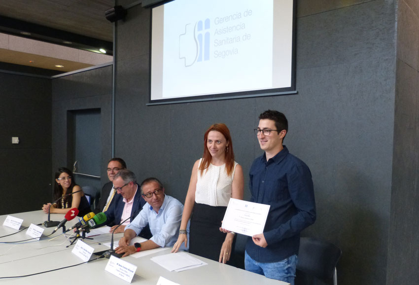 El cuellarano Eduardo Senovilla, alumno de 3º del Grado de Publicidad, ha sido el ganador de un concurso universitario, auspiciado por la Gerencia de Asistencia Sanitaria de Segovia para dotar de una imagen corporativa a esta nueva entidad administrativa, surgida el pasado año tras fusionarse lo que antes eran área de gerencia, área de atención hospitalaria y área de atención primaria.