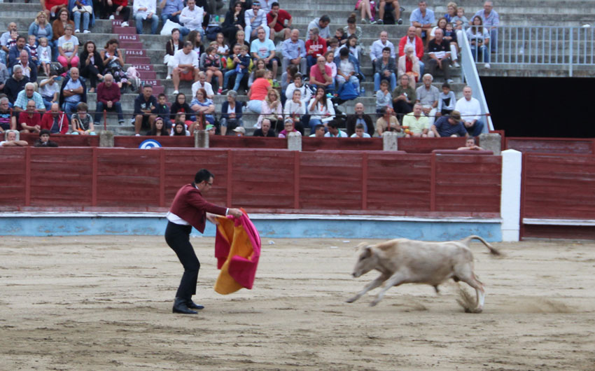 La plaza de toros Segovia lucía media entrada, lo cual está bastante bien para este tipo de eventos, a 5€ por cabeza. Empezó con un brillante despeje plaza a cargo de la amazona segoviana Marta de Mingo. Para a continuación soltar las becerras, banderilleadas pero sin muerte, brillando el estiloso Luis Carlos Martín “El Pita”, no tanto David Cámara, y pundonorosos Pablo Polo y Luis Rivero, al frente de sus respectivas cuadrillas y jaleados por la afición. Buen ambiente en la grada pese a la temperatura, no llegaba a 18 grados, y alguna gota que felizmente quedó en chispeó. Sin incidentes que lamentar, y no como en la última becerrada de Valsaín, el pasado fin de semana, donde uno de los “diestros” fue herido por la vaquilla en el muslo, siendo ingresado en el hospital, donde permanece.