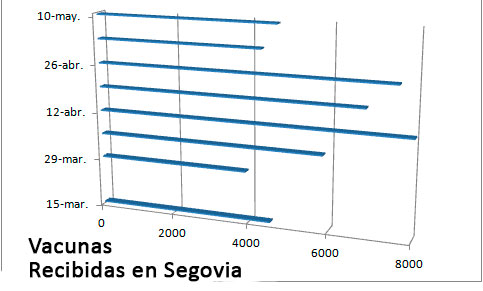 Las vacunas llegan a cuentagotas. Esta semana la provincia de Segovia solo dispondrá de 4.710 vacunas, en lo que es por segunda semana consecutiva un envío muy por debajo de la media de las entregas habidas desde abril. La recepción semanal de vacunas llegó en Segovia a las 8.000 dosis en la segunda semana de abril, para decaer desde entonces. Esto ha motivado que el porcentaje de población que ha iniciado la vacunación se estanque en Segovia en un 32,%, el peor dato de las nueve provincias de Castilla y León. Un ránking que con los datos actualizados a 10 de mayo encabeza Soria (40% de población con la vacunación iniciada), seguida de Ávila y Zamora (superando el 38%). Cierra la lista Segovia, con Valladolid en penúltimo lugar con un 33.3%.